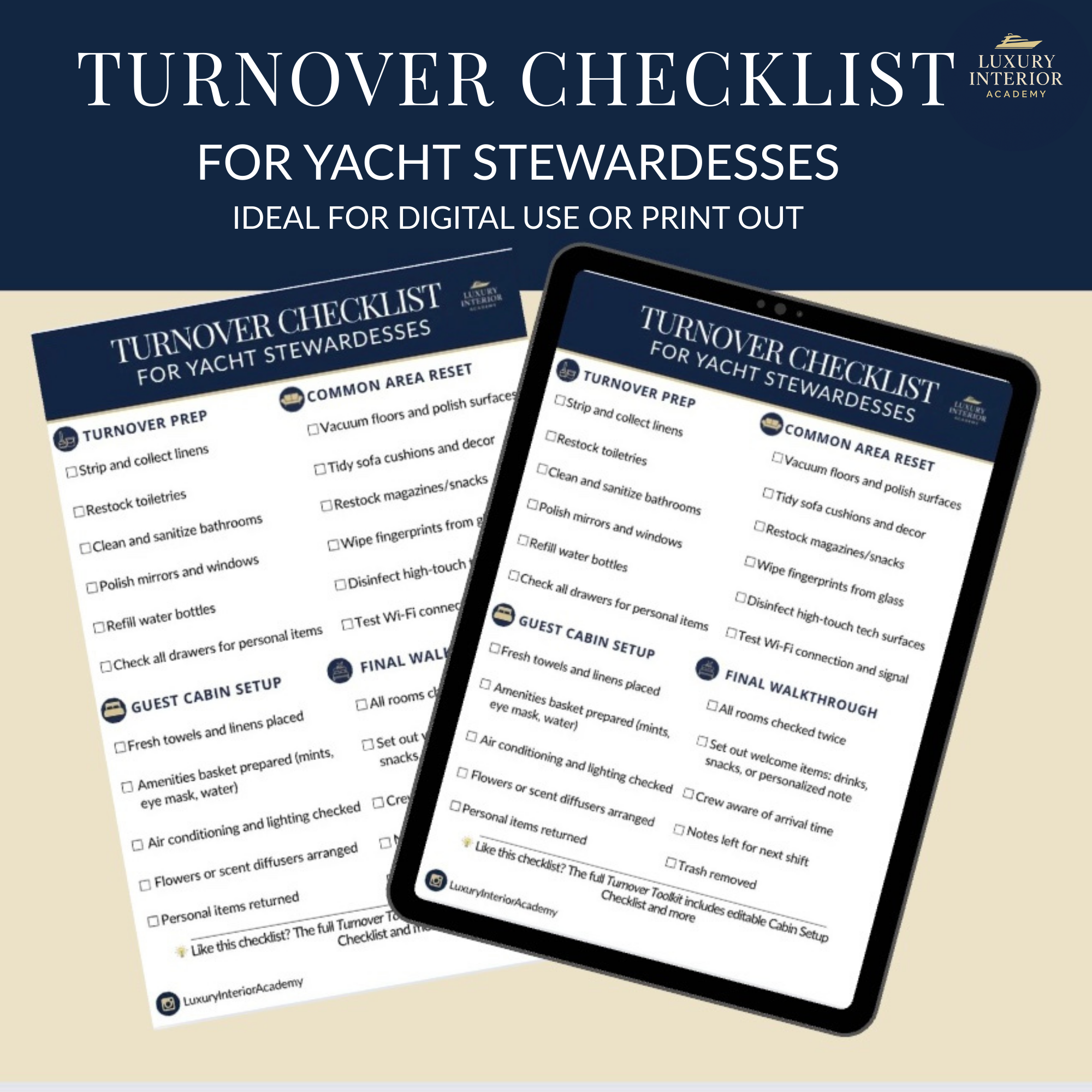 Helping yacht stewardesses deliver unforgettable guest experiences with proven systems, editable checklists, and pro templates designed for luxury charters.